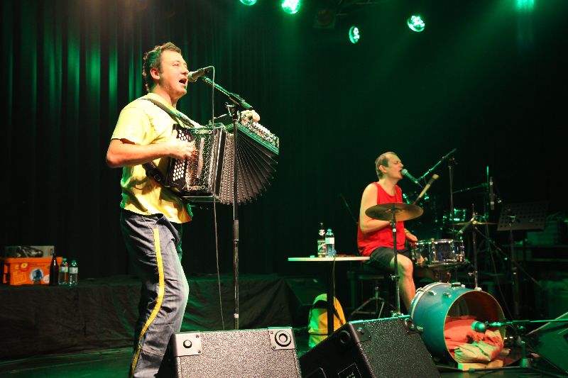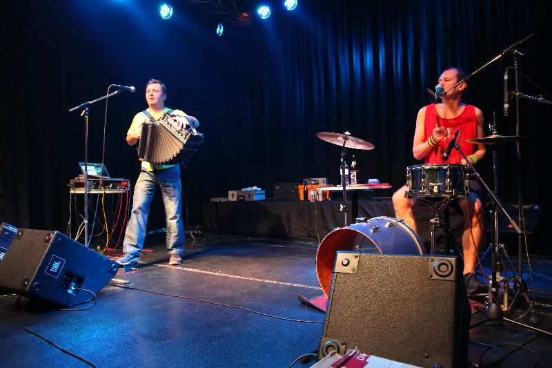 Das GrooveSlangPunkDuo Attwenger spielt auf flux Rock n Roll & Swing, Turbopolka & Speedlandler, Synthie & Geschichten, Brass & Kantri, Dschakkabum und gelegentlich auch langsam.