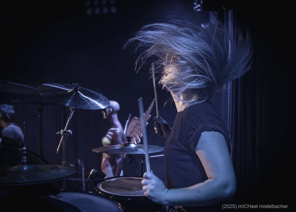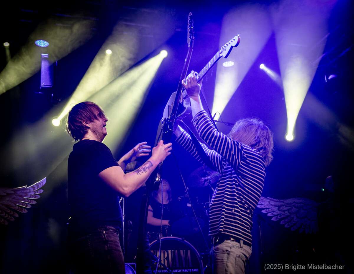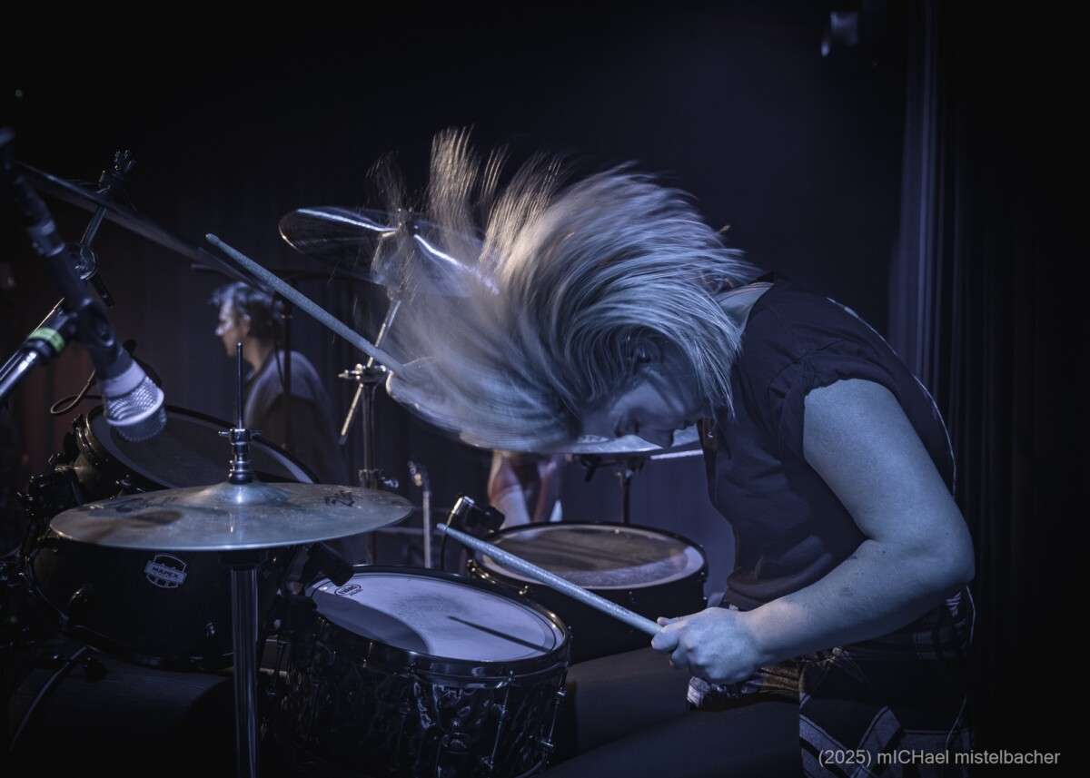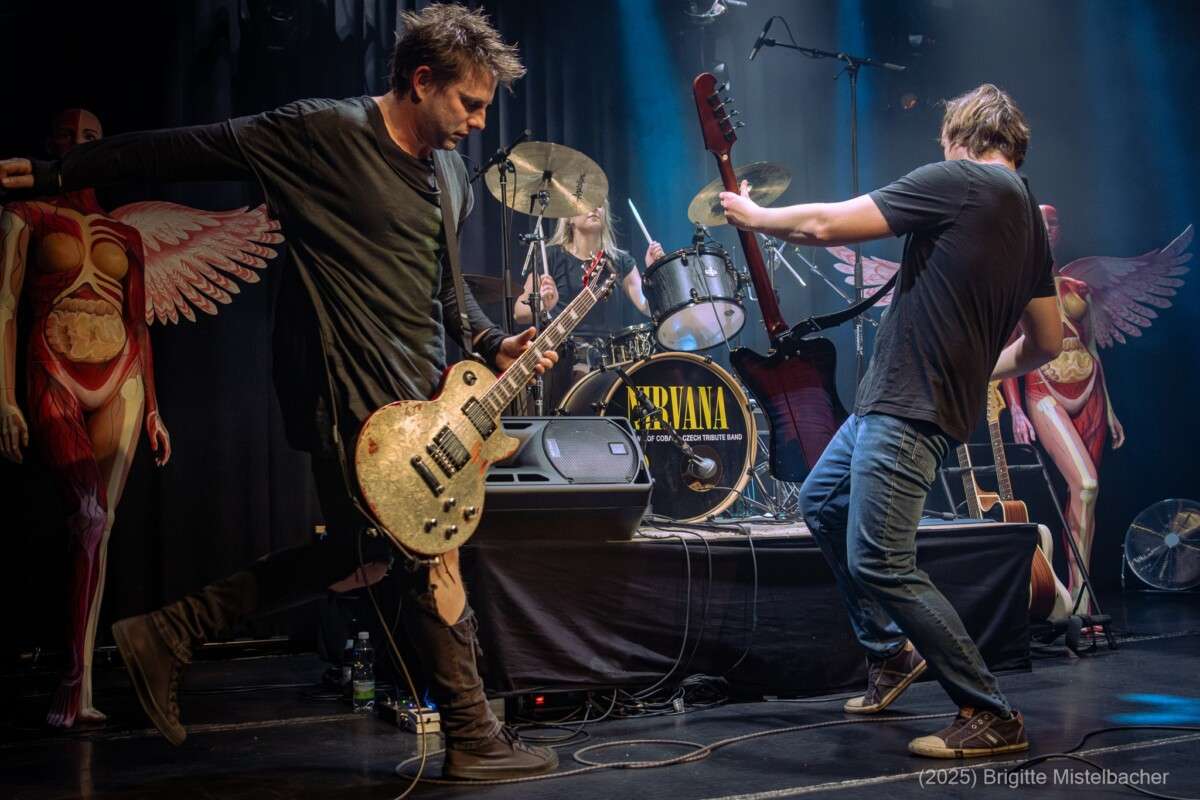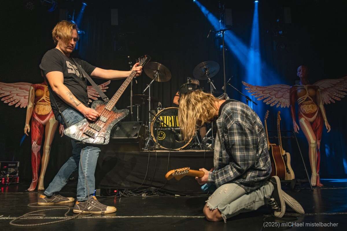 Mit Songs wie „Smells like teen spirit“, „Come as you are“, „Lithium“, „Polly“ u.a. zerlegen sie die Bühne mit der gleichen Energie wie Cobain & Co in den frühen 1990ern. Im Repertoire sind so gut wie alle Nirvana- Songs und Cobain hätte es sicher gefallen, dass in dieser Band eine junge Frau am Schlagzeug werkt!
