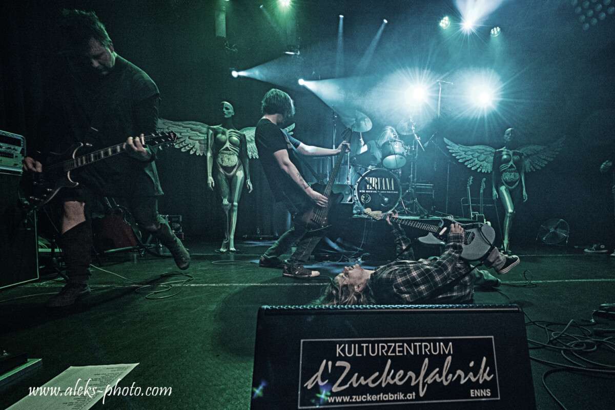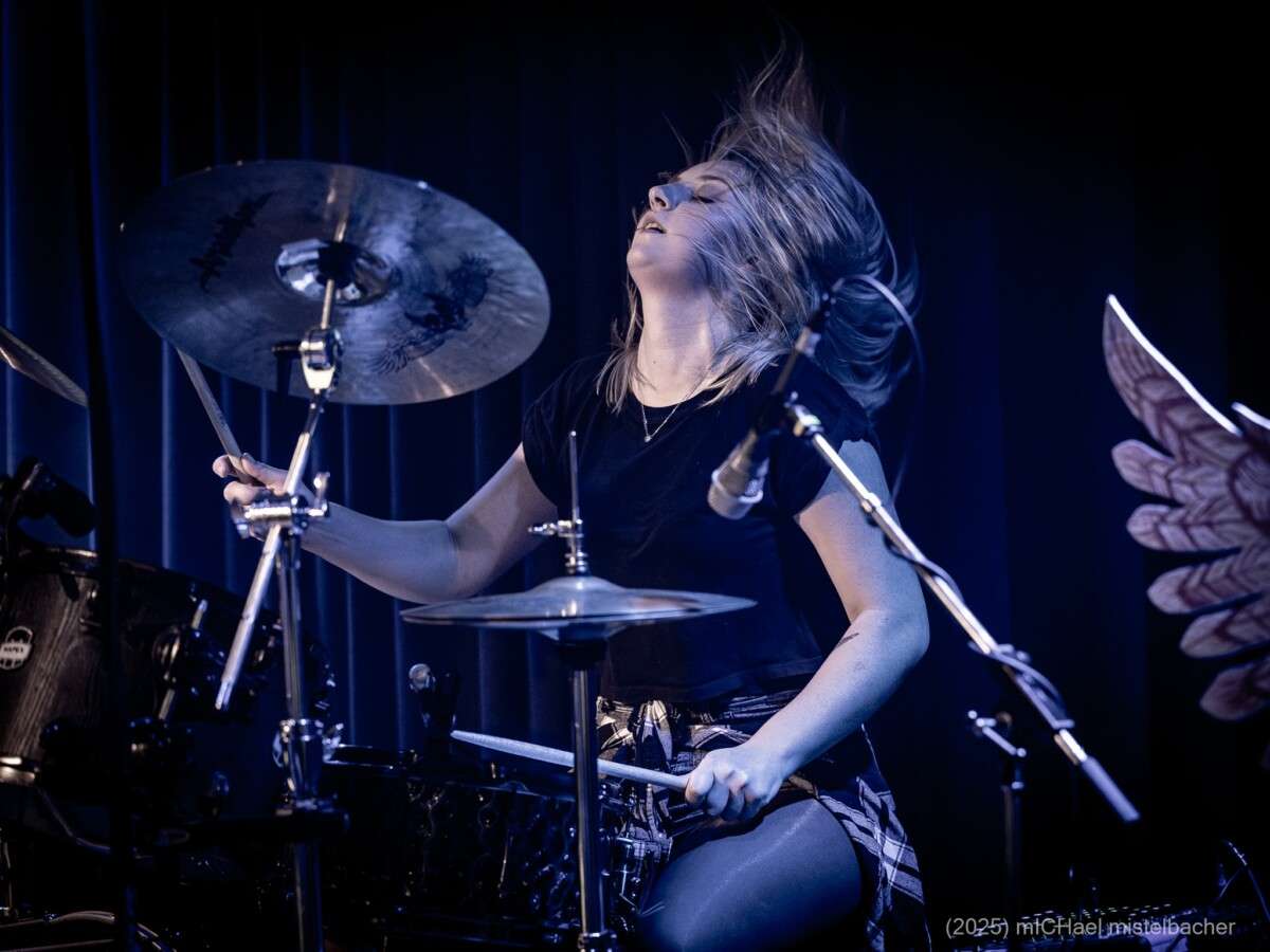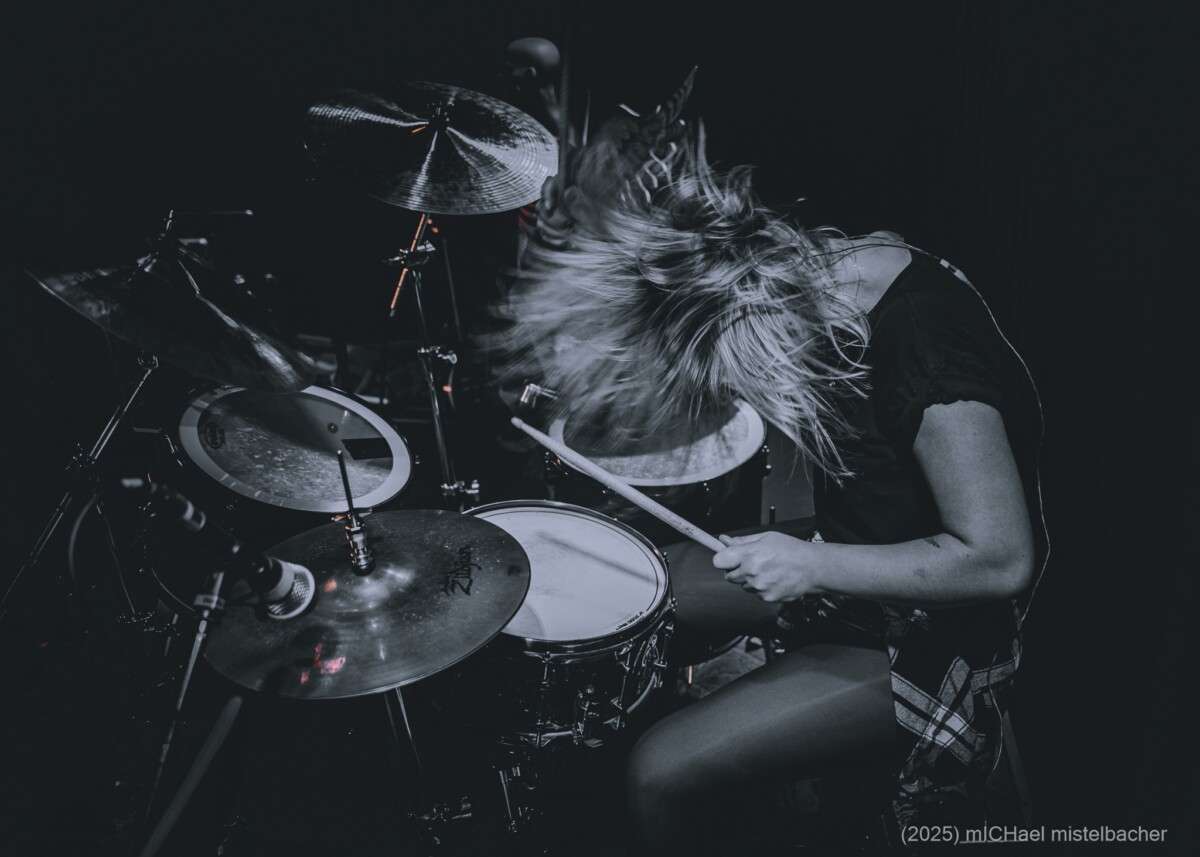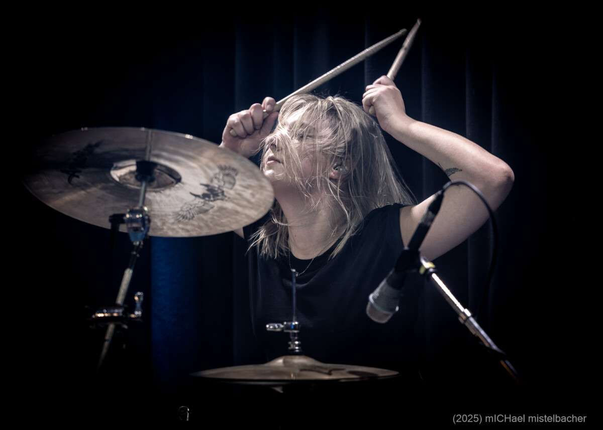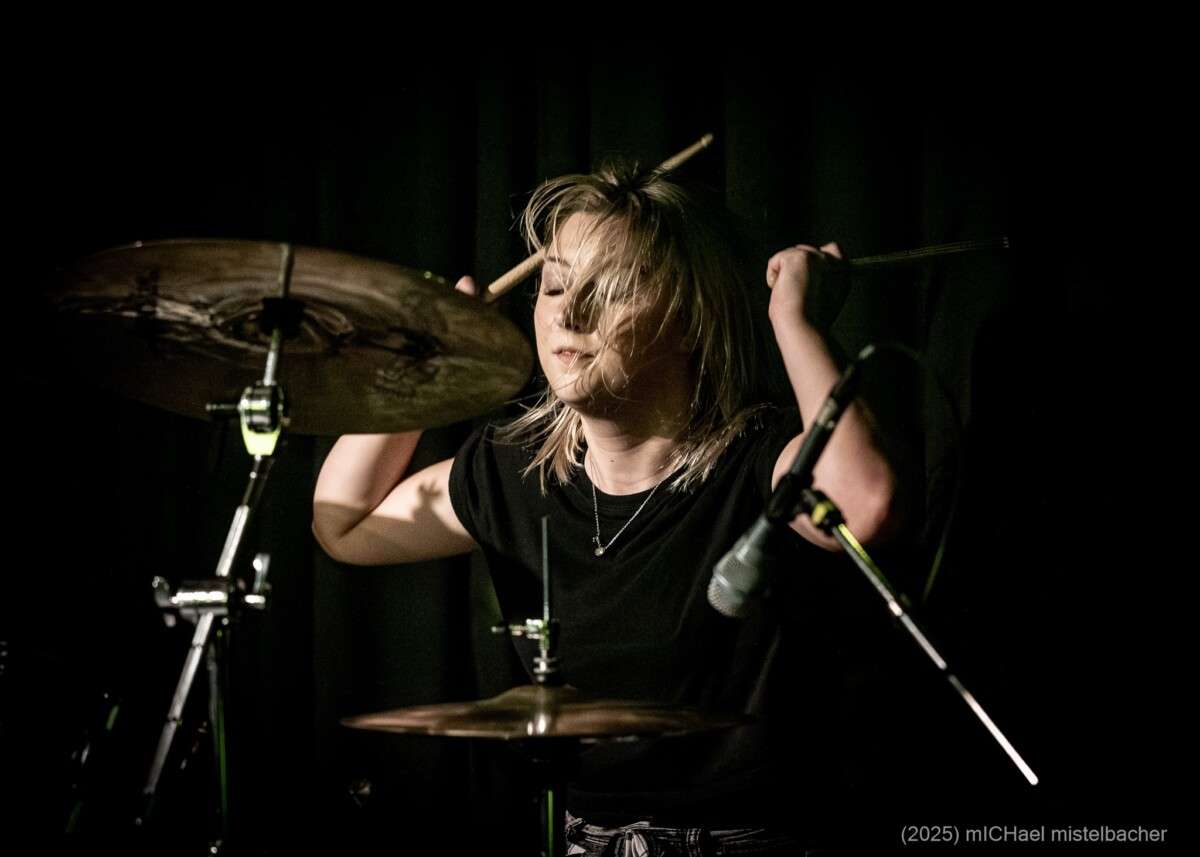 Mit Songs wie „Smells like teen spirit“, „Come as you are“, „Lithium“, „Polly“ u.a. zerlegen sie die Bühne mit der gleichen Energie wie Cobain & Co in den frühen 1990ern. Im Repertoire sind so gut wie alle Nirvana- Songs und Cobain hätte es sicher gefallen, dass in dieser Band eine junge Frau am Schlagzeug werkt!
